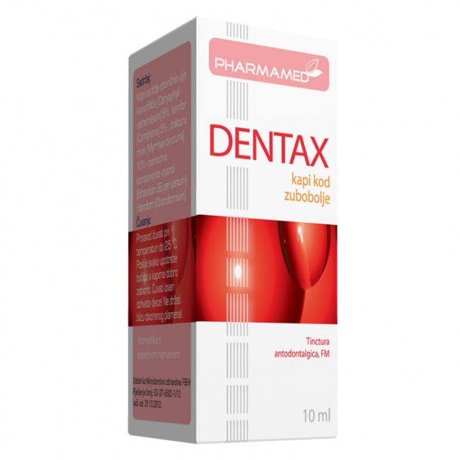 Ulje karanfilića svojim osnovnim sastojkom, eugenolom, djeluje kao lokalni anestetik, a ujedno i kao antiseptik, te DENTAX kapima daje ugodan miris. Tinktura mire ima baktericidno i analgetsko djelovanje, te poboljšava granulaciju tkiva i zacjeljivanje rana. Zbog takvih osobina ugrađenih komponenti, DENTAX kapi se koriste kao pomoćno sredstvo za ublažavanje zubobolje.